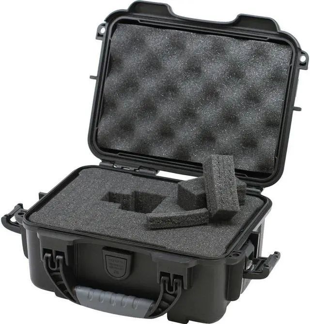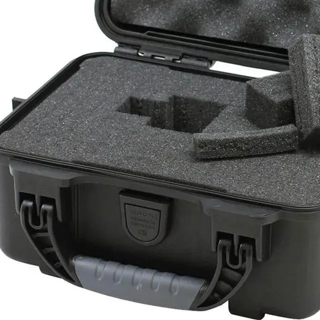 Protective Case, Bottom Depth 2 7/8 in, Closure Type Padlock, Powerclaw Latching System, Color Black, Electrostatic Discharge Not Electrostatic Discharge Conductive, Foam Design Pick and Pluck, Handle Style Folding, Includes Foam Insert Foam Insert Included, Inside Depth 3 3/4 in, Inside Length 8 3/8 in, Inside Width 6 in, Lid Depth 3/4 in, Material Plastic, Maximum Operating Temperature 140 Degrees F, Minimum Operating Temperature -20 Degrees F, Number of Latches 2, Number of Wheels 0. This item has been restricted from sale in the following state (s): []