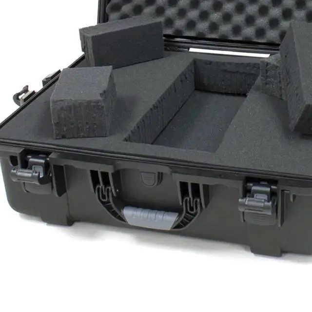 An epitome of resilience and security, the Large Series 945 Lightweight NK-7 Resin Waterproof Case with Foam in sleek black is meticulously engineered for the most demanding missions. The robust PowerClaw Latching System ensures your case remains securely fastened with compressive force, while the integrated slide lock safeguards against accidental openings during transit or if dropped. Crafted from super tough nylon, this case promises to keep your valuable electronics, such as cameras and laptops, safe no matter the destination.