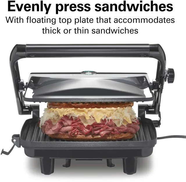 With the Hamilton Beach Panini Press & Gourmet Sandwich Maker, enjoy restaurant-style sandwiches at home for a fraction of the cost.