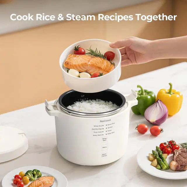 • Multifunctional Rice Cooker - Besides basic cooking for white/brown rice, oatmeal, and quinoa, this 3.5 cup rice cooker also features slow cook and steam functions. With the extra function, you can make additional dishes for your dinner. This rice cooker can create soups, stews, steamed dishes, and hot pots. Rice cooking and dish steaming can occur at the same time.