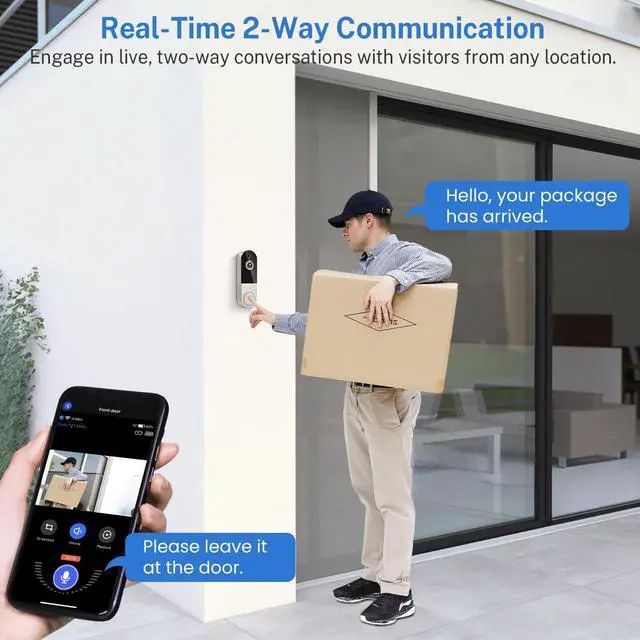 Talk to guests or delivery drivers instantly through the built-in speaker and microphone from anywhere using your smartphone.