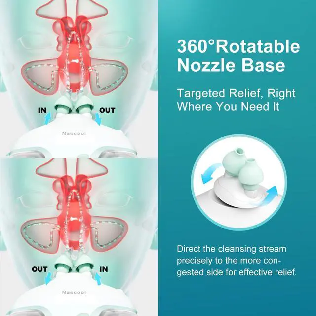 Clean and HygienicUnlike neti pot and nasal squeeze bottle, our nose cleaner has a clean water tank and a waste water tank. When rinsing, the waste liquid will automatically be recycled by the waste water tank. The Self-cleaning Pipe helps you clean the device thoroughly with water after nasal wash. It's user friendly and time saving. Note: Clean the accessory with water below 70 and wipe with clean gauze. Avoid using hot water to prevent damage to the water tank