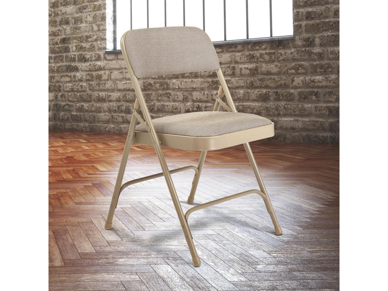 NPS 2201 Deluxe Fabric Upholstered Dual-Hinge Premium Folding Chair - Supports Up to 500 lb - Cafe Beige - 4/Carton