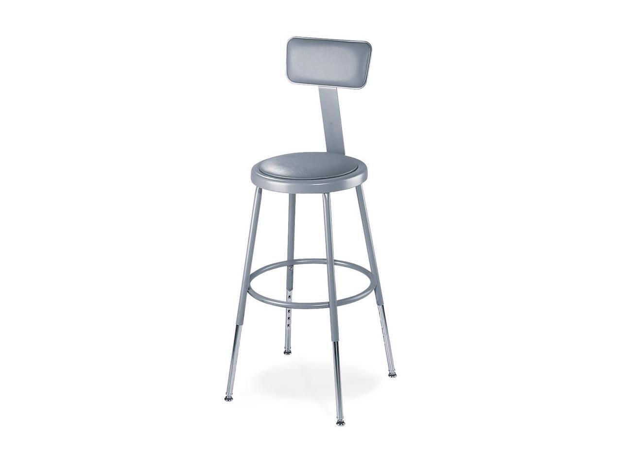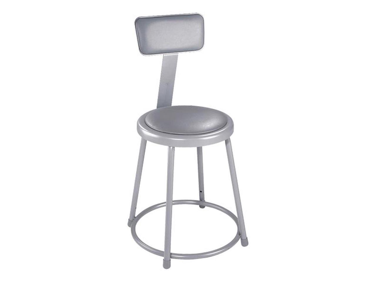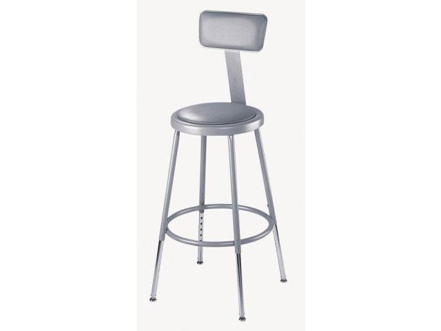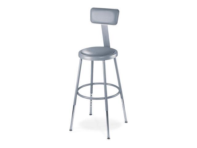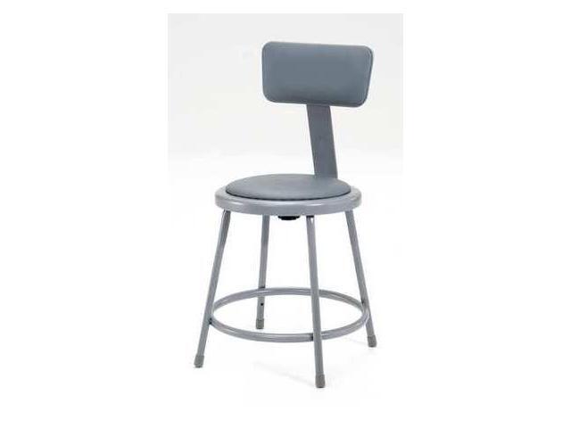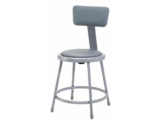 NPS 6418B 6400 Series Heavy Duty Vinyl Padded Stool with Backrest- Supports 300 lb - 18" Seat Height - Gray Seat, Gray Back, Gray Base