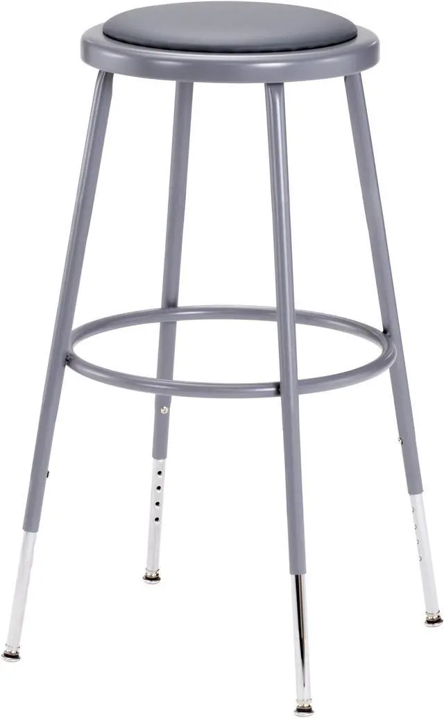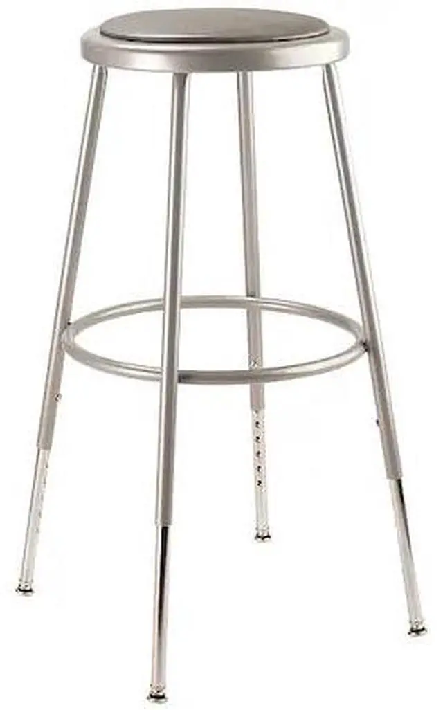 Round Stool, No, Weight Capacity 300 lb, Seat Height Range 25 in to 33 in, Overall Height 25 in to 32 1/2 in, Color Gray, Seat Material Vinyl, Base Material Steel, Number of Casters 0, Caster Type Non-Marring Glides, Caster Material polypropylene glides, Features Padded Seat, Partially Assembled, ANSI/BIFMA Standards. This item has been restricted from sale in the following state (s): []