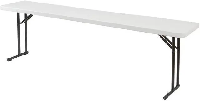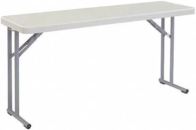 The BT1800 Series blow-molded seminar folding tables are ideal for, but not limited to, training and conference room use. Conveniently lightweight and transportable, with a plastic light speckled gray tabletop that is scratch-resistant yet still enables a surface smooth enough for writing. This table is heat-resistant up to 212º F and has a weight capacity of 700 lbs. The textured gray powder-coated 16-gauge steel frame features leg braces with spring-loaded push-button closing capability for maximal ease and stability. The cantilevered legs offer ample leg room to help prevent you from banging your knees. Fldg Tbl, Rectgl, Polypropylene, 60"L, 18"W