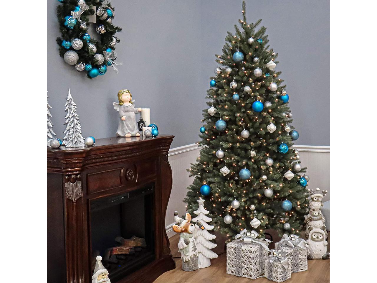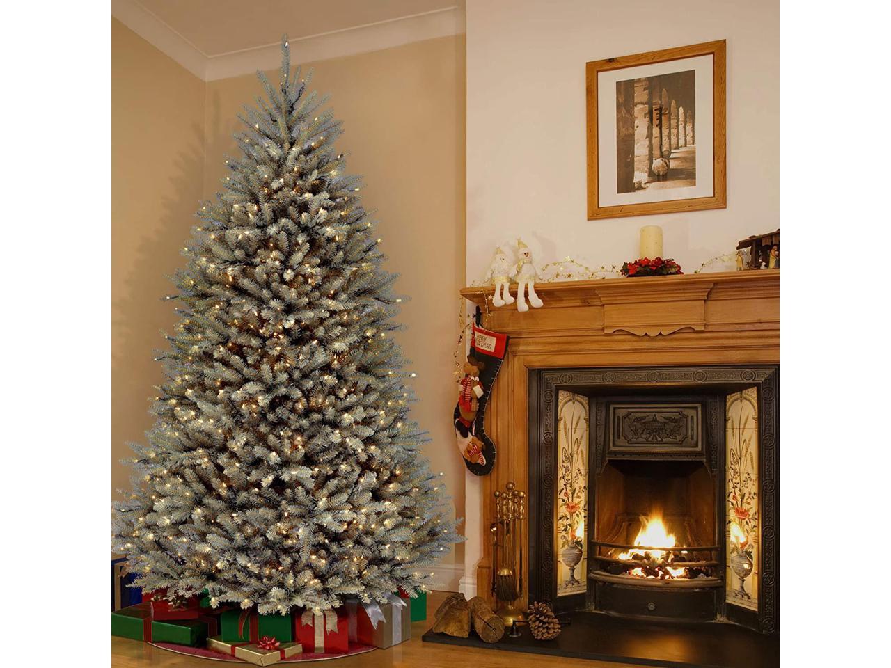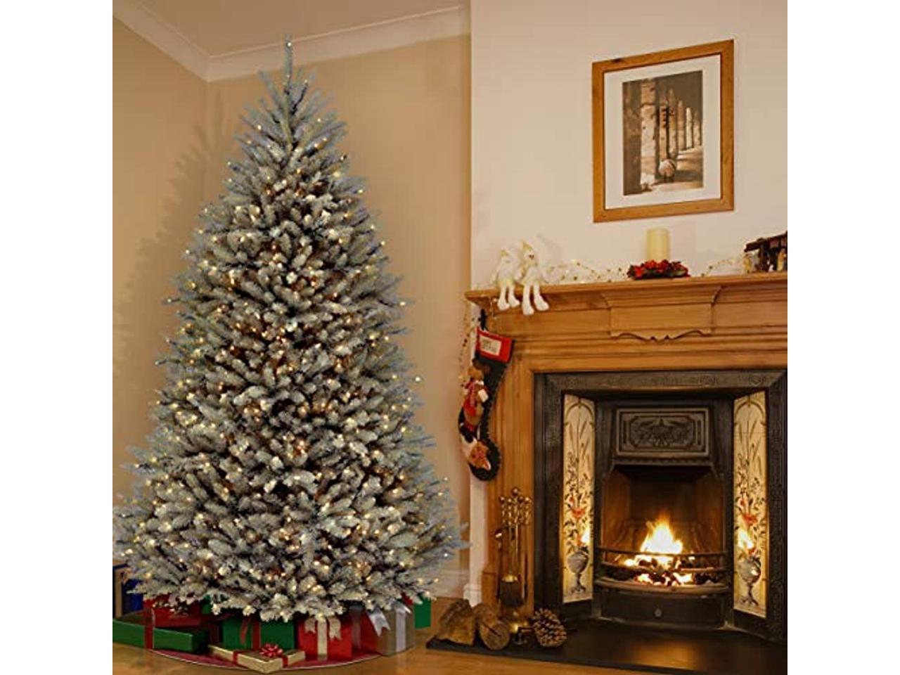 National Tree Company DUBH75LO 7.5 ft. Pre-Lit Dunhill Fir Blue Spruce Tree - 59" x 59" x 90" - Blue Tree, Green Tree Stand