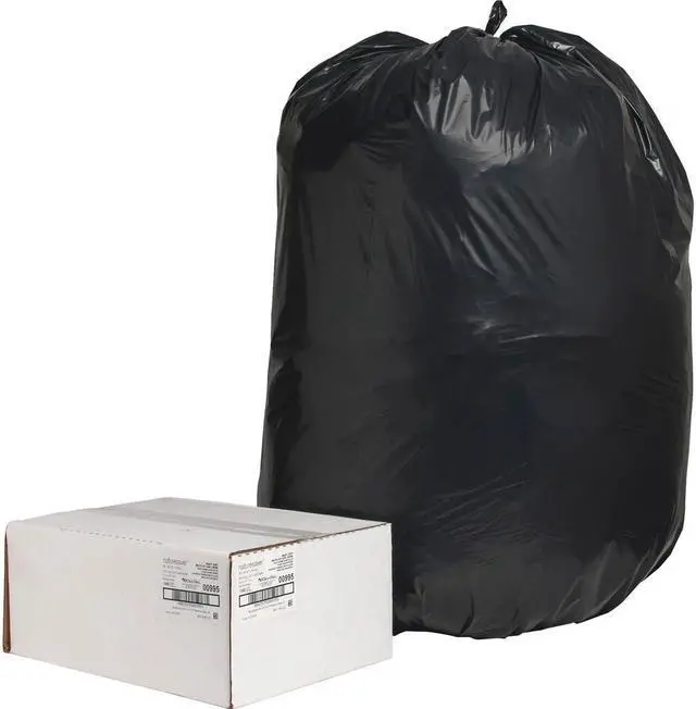 Rugged, low-density bags are made with a high percentage of recycled material. The premium blend of recycled plastics makes them puncture-resistant and ideal for all trash applications. Star-bottom seal is designed for a more even distribution of contents. Bags come in a convenient coreless roll for easy dispensing anywhere. The black color hides unsightly trash.
