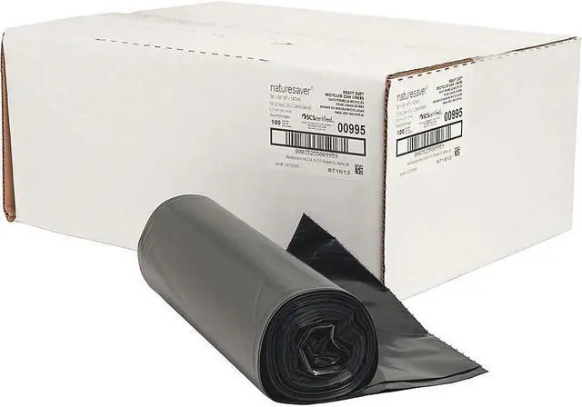Nature Saver Trash Can Liners Rcycld 55-60 Gal 2.0mil 38"x58" 100/BX BK 00995