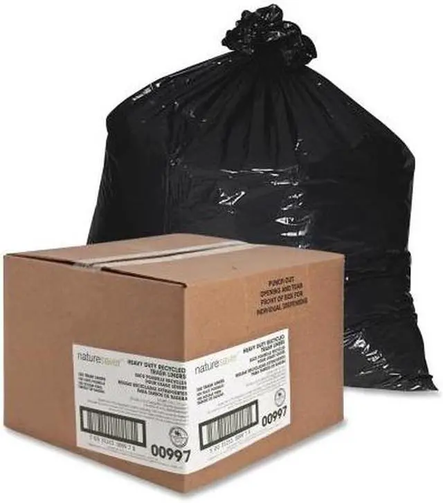 Nature Saver Trash Can Liners Rcycld 56 Gal 1.65mil 43"x48" 100/BX BK 00997