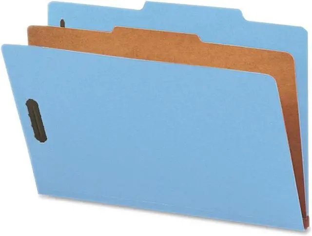 Eco-friendly classification folders are durable and made for subdividing large, bulky legal-size files. 2 fasteners are embedded on the front and back panels as well as the divider, expand for a 2" capacity and keep papers secure and in order. Covers are made of 25 point stock and have 2/5-cut right of center tabs. The dividers are made of 20 point stock and have 1/3-cut tabs. Top tab folders are made with recycled material."