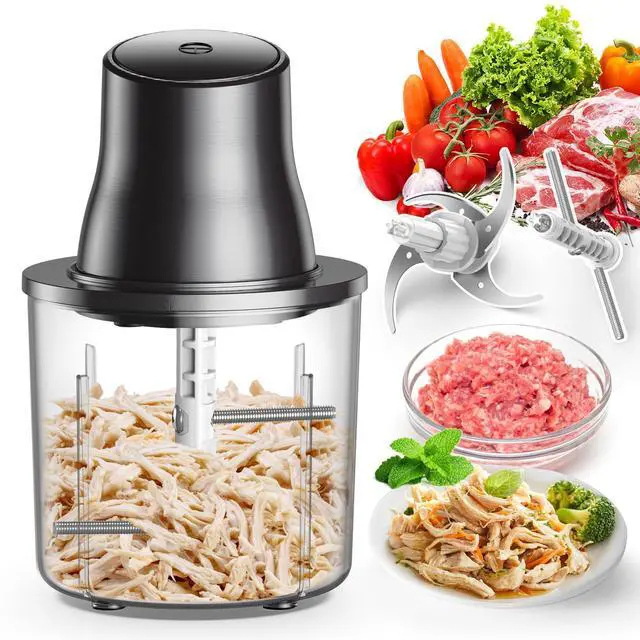 2-in-1 Electric Meat Grinder and Chicken Shredder The Electric food processor is upgraded with two different types of stainless steel blades: 1,Wire drawing blade is perfect chicken shreds in 3-5 second, 2, Dual-stage 'S' blade" chop any veggie, meat, nuts, or fruit. The meat shredder is very suitable for fitness enthusiasts, barbecue lovers, or people who like to cook.Pet lovers can use the meat machine to shred chicken finely for pet food.