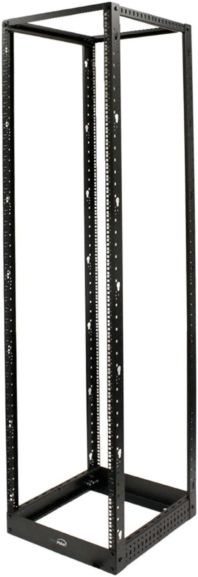 This 4-post open frame adjustable depth rack by NavePoint is great for organizing your networking equipment. Comes flat-packed and requires some assembly. Made of high-quality SPCC Cold Rolled Steel with a powdered coated finish for durability. Available in a variety heights.