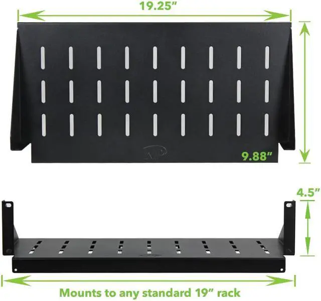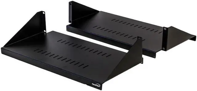 This line of NavePoint cantilever shelves is center weighted and were designed to fit standard 19" racks or cabinets. It has slotted venting to reduce the possibility of overheating. Made of high quality cold rolled steel with a powder coated finish. Comes assembled.