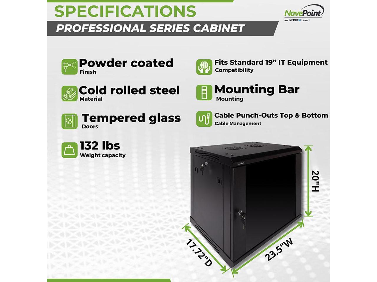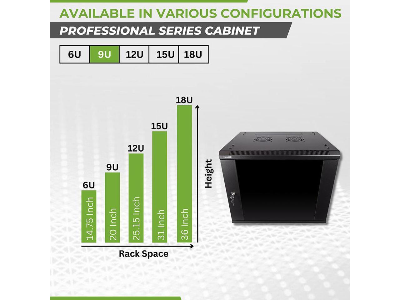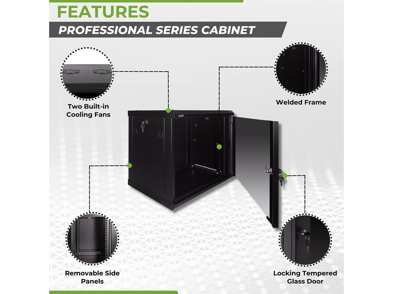 Navepoint 9U Wallmount Networking Cabinet 450mm Depth with Fans
