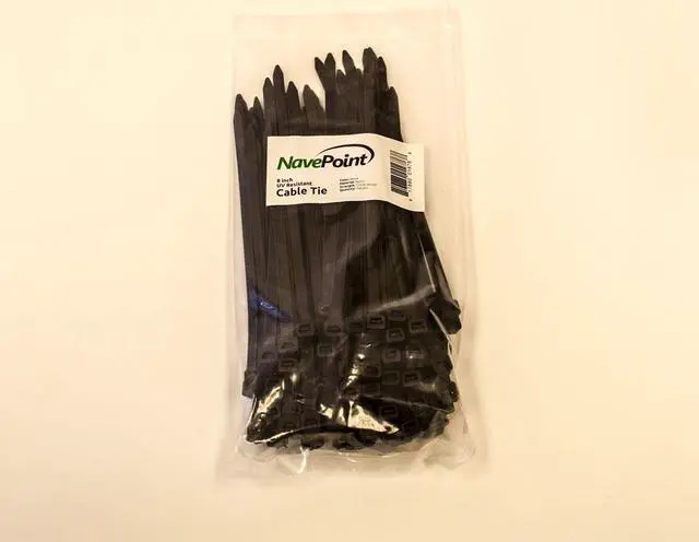 NavePoint 8 Inch Nylon UV Resistant Cable Wire Zip Tie 120 lbs - Black 300 Pack Lot Pcs Qty