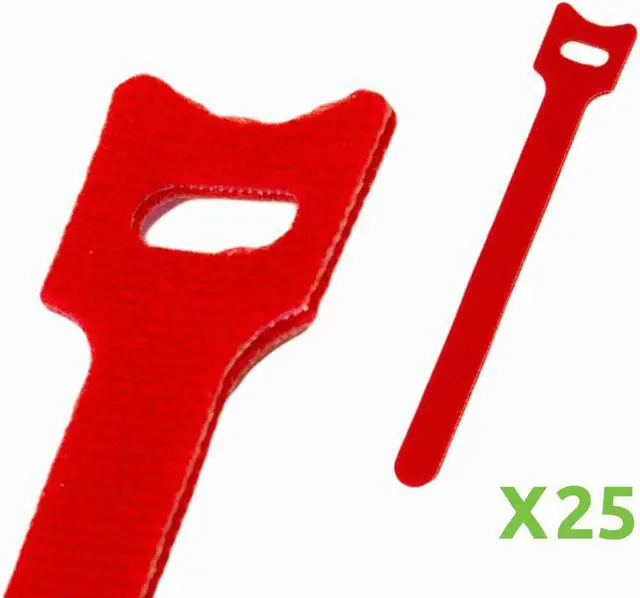 NavePoint 6 Inch Hook and Loop Reusable Strap Cable Cord Wire Ties 25 Pack Red