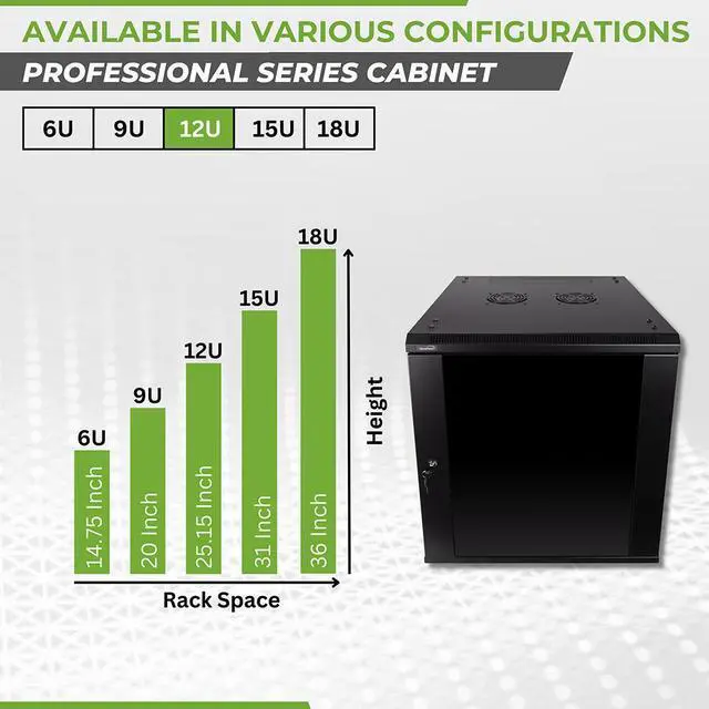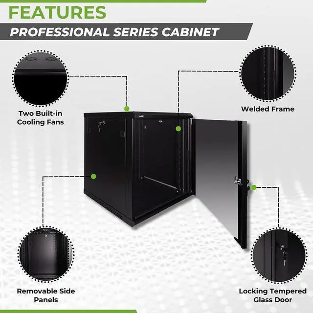This 600mm depth cabinet by NavePoint is part of the Pro Series and can be wall-mounted or self standing and is great for organizing your networking equipment. It has removable side panels for easy access, along with venting slots to keep your equipment cool. Made of high-quality SPCC Cold Rolled Steel with electro-static powdered coated finish. Comes flat-packed and requires some assembly. Available in 6U, 9U, 12U, 15U and 18U configurations.
