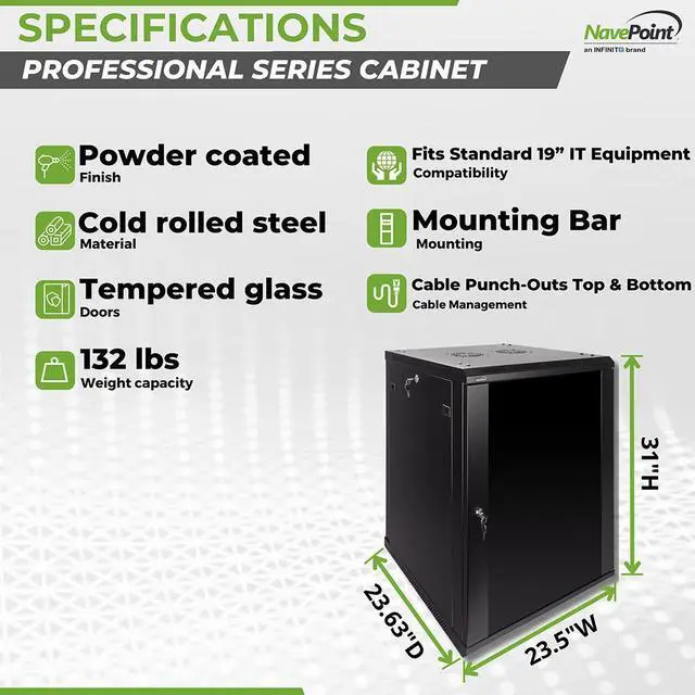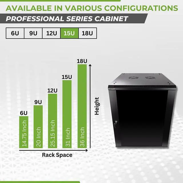 This 600mm depth cabinet by NavePoint is part of the Pro Series and can be wall-mounted or self standing and is great for organizing your networking equipment. It has removable side panels for easy access, along with venting slots to keep your equipment cool. Made of high-quality SPCC Cold Rolled Steel with electro-static powdered coated finish. Comes flat-packed and requires some assembly. Available in 6U, 9U, 12U, 15U and 18U configurations.