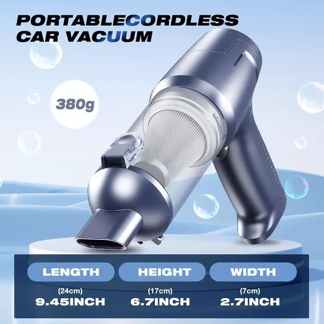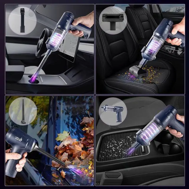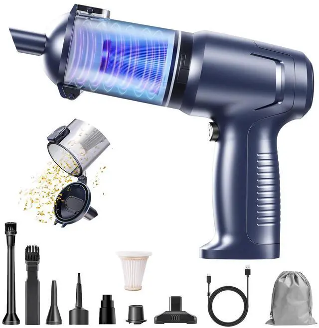 HAUSMEISTER AirFlex Pro 4-in-1 Cordless Powerhouse: Your Ultimate Cleaning CompanionEngineered with German precision, this Navy Blue handheld vacuum redefines portable cleaning. The brushless motor unleashes 20000PA Cyclone Suction effortlessly extracting pet hair from car seats, crumbs from sofa crevices, and dust from keyboard switches. Seamlessly transition between Suction/Blower/Inflation modes using 9 specialized tools, tackling everything from laptop vents to camping air mattresses.The Hygienic One-Touch System revolutionizes maintenance: press a button to eject debris from the 0.2L tank, while dual washable filters (HEPA + steel mesh) capture 99% of microparticles. Weighing less than 1lb with Type-C fast charging, store it in your glove compartment with the premium carrying case ready to purge messes anywhere, anytime.For the urban explorer, busy parent, and detail-oriented pro Hausmeister turns chore into triumph.
