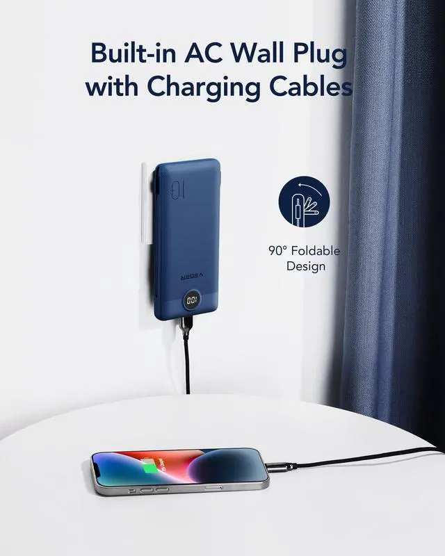 Charge the product using a charger with the corresponding power rating (Built-in AC Wall Plug: 100-240V~ 50/60Hz 0.5A or USB-C: 5V-3A).