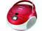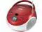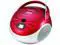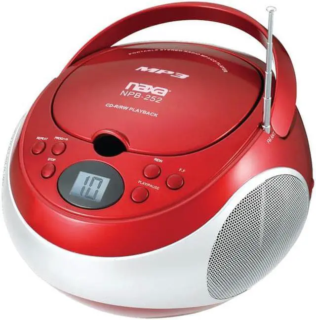 The NPB252RD Portable CD/MP3 Player and AM/FM Stereo in red from naxa is a top-loading MP3/CD player with AM/FM stereo radio, aux input, programmable memory and program, skip, pause and repeat functions. The telescopic antenna ensures you\'ll receive all your favorite radio stations, and its miniature boom box design offers super convenient portability, no matter where you choose to take your tunes!. Portable, top-loading CD/MP3 player. AM/FM stereo radio. Programmable memory. Program, skip, pause & repeat. Rotary volume control. Telescopic antenna. Aux input.