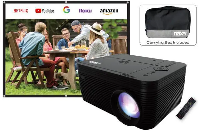Enjoy streaming all types of movies, music, and media through various apps by connecting a compatible streaming device such as: Amazon® Fire Stick, Roku® Streaming Stick, or Google® Chrome Stick (streaming devices not included) LCD projector delivers high-quality entertainment in vivid imagery Offers a wide variety of multimedia functionality, allowing you to stream media via USB flash drives, memory cards, 2 HDMI connections, and AV IN connection with ease Many different inputs allow for connecting your favorite devices such as cable boxes, game consoles, blue-ray players, and streaming devices like smartphones, tablets, Roku® Streaming Stick, Amazon® Fire Stick, Google® Chrome Stick & Apple® TV (not inc) Listen to your favorite media privately and distraction-free thanks to the 3.5 mm headphone input High-powered speakers will fill any entertainment room for all to enjoy Long-lasting LED bulb life delivers up to 20, 000 hours of usage at a time Full-Function remote control allows you to conveniently operate your projector entirely from the comfort of your couch