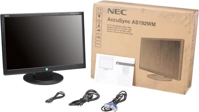 NEC's 19" AccuSync™ AS192WM desktop monitor is a value-driven, widescreen display with mercury-free LED backlighting and eco-friendly features. Ideal for cost-conscious users requiring essential technologies, this model offers a 33% reduction in power consumption and a near 20% reduction in weight, enabling easy transport and wall mounting capabilities. The AS192WM is compliant with ENERGY STAR® 6.0 and TCO 6.0 and is EPEAT™ Silver rated.