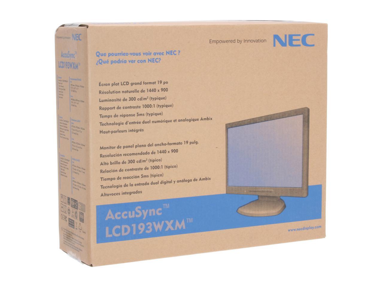 Get widescreen style with NEC's 19" AccuSync LCD193WXM monitor. It's a superb monitor with an unbeatable price. With a 1440 x 900 resolution, 1000:1 contrast ratio and over sixteen million colors, you'll see every detail, find every typo . . . all while pleasing your eyes and delighting your bottom line.