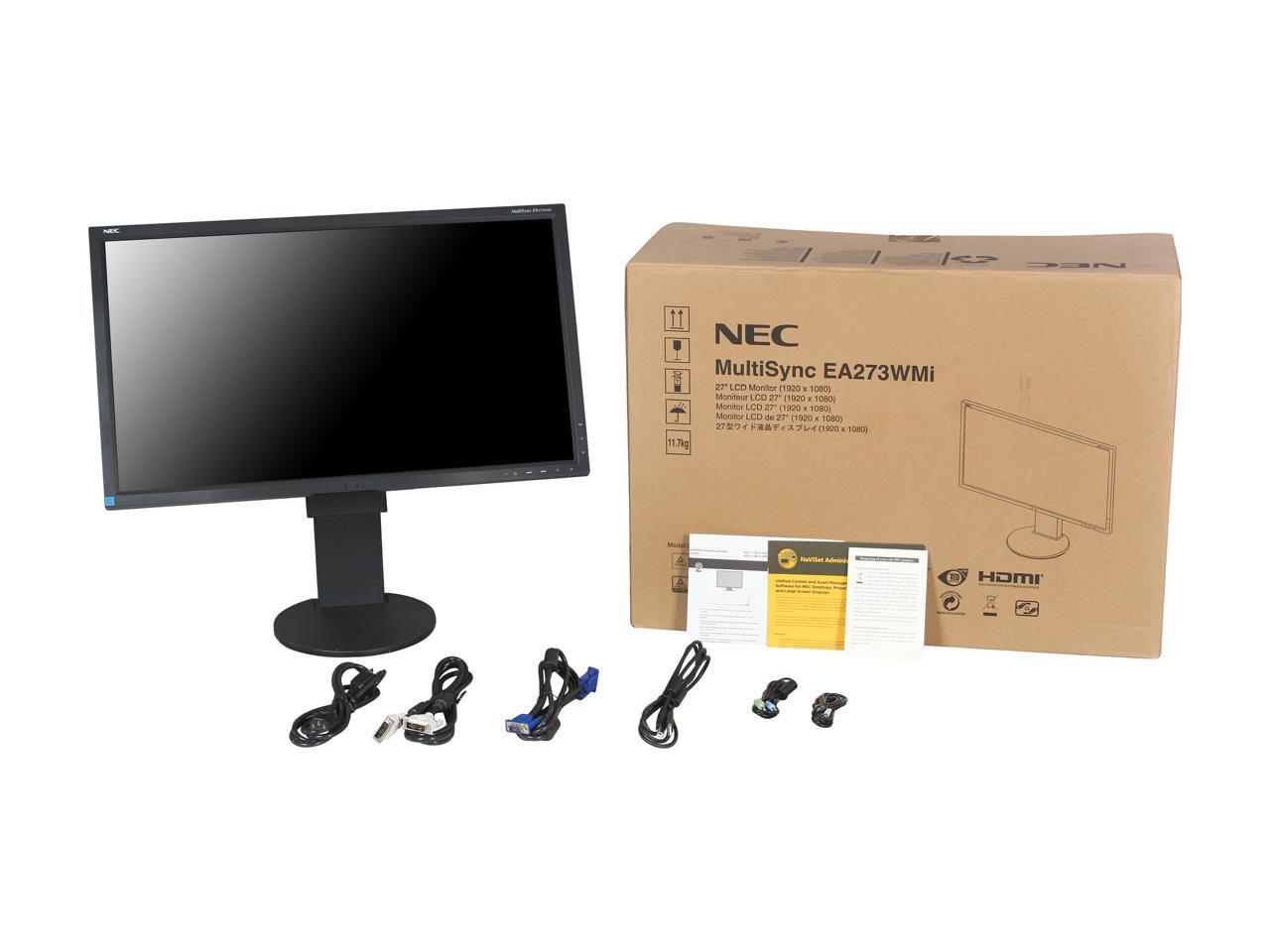 NEC Display MultiSync EA273WMi-BK Black 27” Widescreen AH-IPS Panel, LED Backlight LCD Monitor 6ms 250cd/m2, DisplayPort, USB hub, Height Adjust, Pivot, Tilt & Swivel, Speakers, 3 Year Warranty