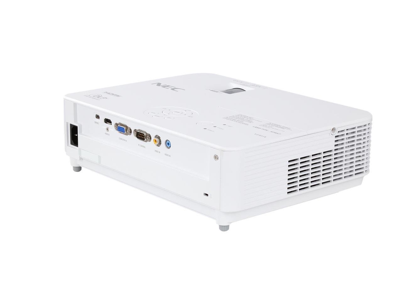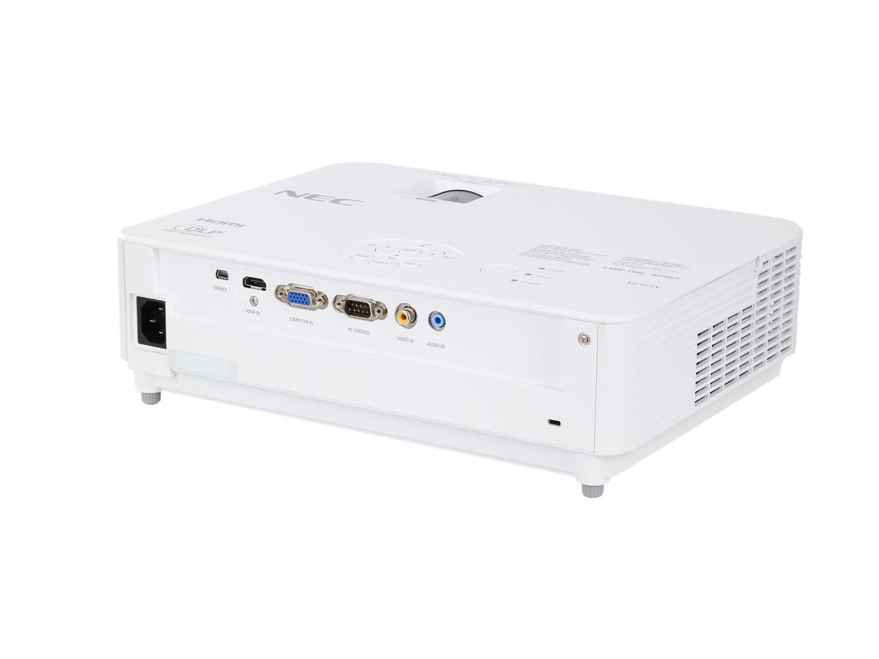 NEC’s XGA native-resolution, 3,000 lumens, VE303X portable projector is designed to provide high brightness for small-to-medium-sized businesses, education environments, corporate conference rooms and mobility applications where heavy ambient light is present but the space requires a small projector. This lightweight model is affordable with essential features, including 3D Ready technology, high-contrast images and a 2W speaker. Its automated technologies—from Auto Power On and quick startup/shutdown to a lamp life up to 6000 hours—make it an eco-friendly choice. The VE303X offers the Intelligent Driving Scheme (IDS2) for increased lamp life and contrast.