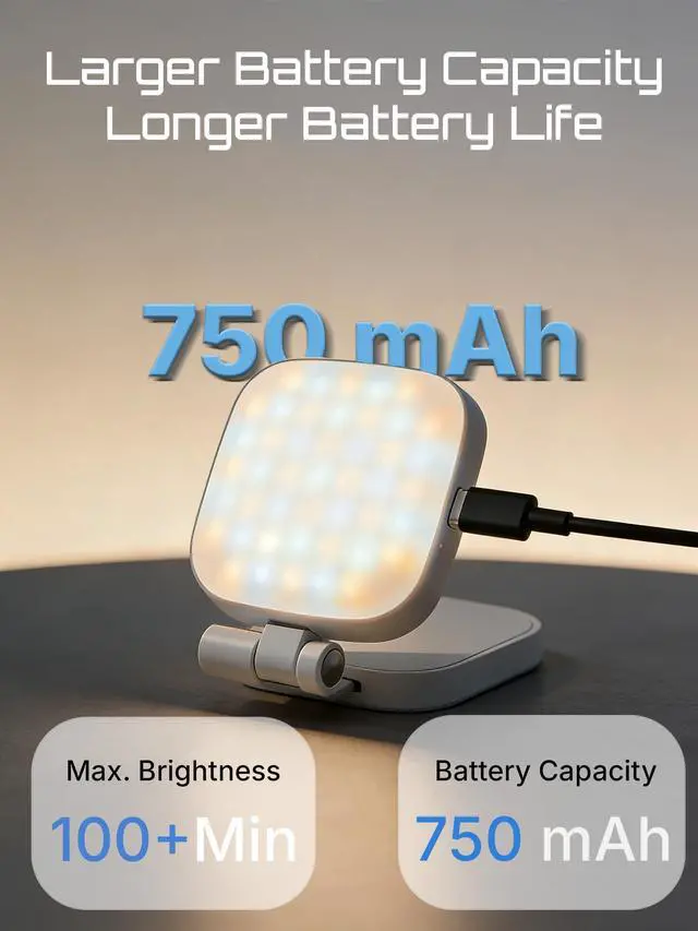Built-in 750mAh battery. It supports over 100 minutes of continuous working time at maximum brightness.