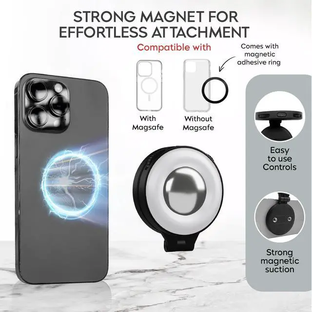Elevate your mobile content creation with the CLT Magnetic LED Selfie Light. Designed for seamless magnetic alignment with Magsafe-enabled iPhones, this rechargeable and portable light enhances your photography and videography experience.