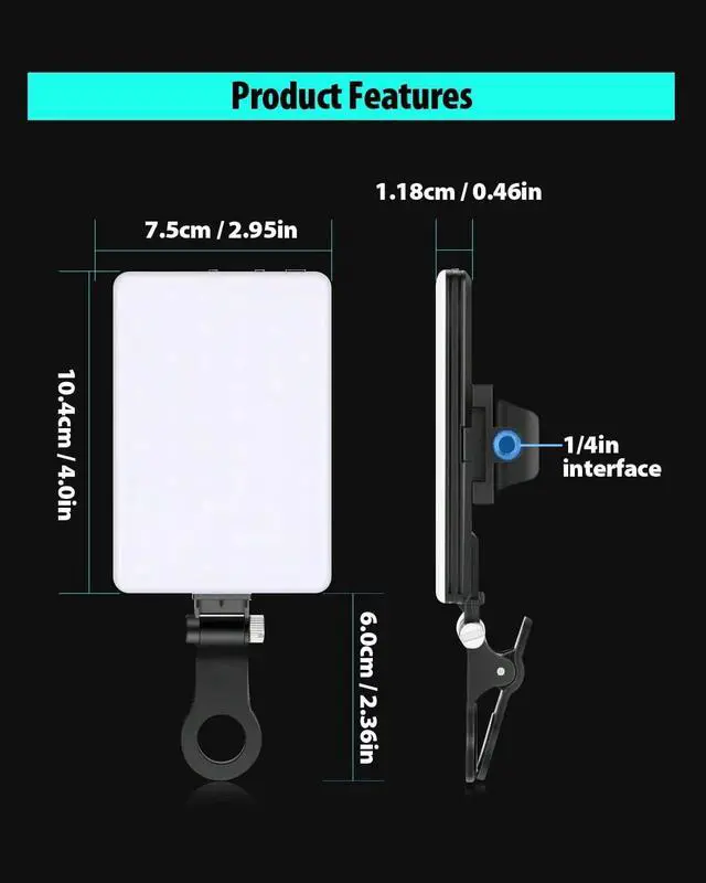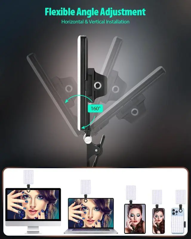 Multi-Function DesignWith 160° rotation adjustable LED light panel for precise light positioning on your mobile phone, desktop computer, laptop, or bedside, it is suitable for all scenarios that need fill light, such as mobile phone shooting, zoom lighting or reading lamp; An adapter embedded with ¼-inch thread of 180° rotatable head for cameras (hot shoe mount included), tripods, selfie sticks. Fill lighting effect is better than small selfie ring light.