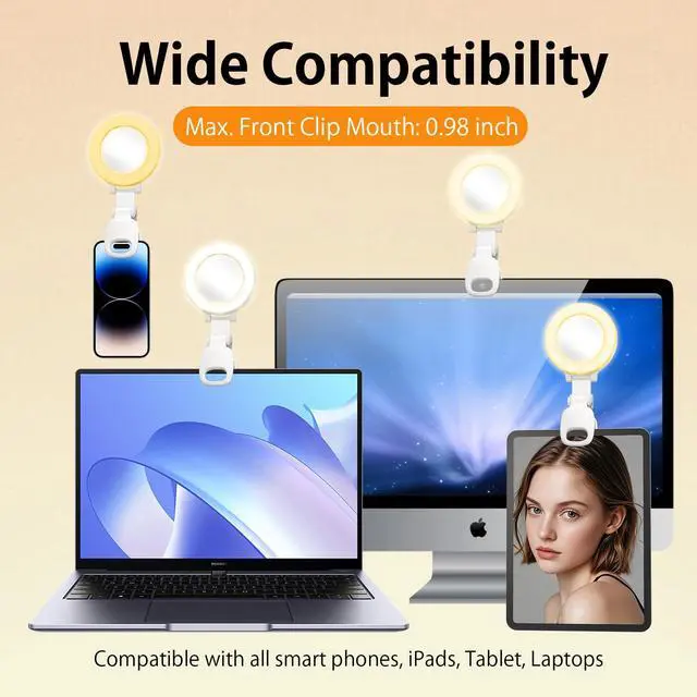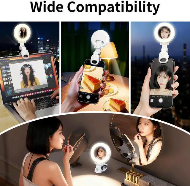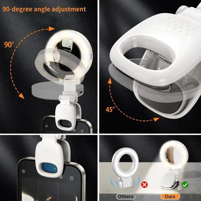 Pocket mobile phone fill light Portable Selfie Light thats only 30g and foldableeasily fits in your pocket for on-the-go use! This Clip On LED Light works as a Ring Light for Phone and Selfie Light for iPhone, solving the hassle of carrying bulky lighting gear for outdoor Vlogs or TikTok shoots. The compact design makes this Phone Light your perfect companion for impromptu selfies or video calls anywhere