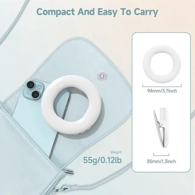 The selfie light is very portable,perfect size help you put it in your pocket, any bags, smooth surface doesn't scratch anything