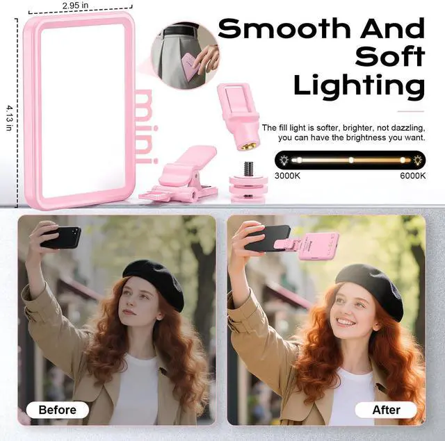 [3 Color Modes & 10 Brightness Adjustable] Selfie light for iPhone and Android is a game-changer for your phone photo. With 3 color modes and 10 brightness levels, you can easily match your skin tone and adapt to various lighting scenarios. Whether you're filming a video with TikTok light for phone, recording with a vlogging light, or taking a selfie with a selfie LED light. Take it anywhere, and enjoy perfect lighting for every shoot, from a simple phone picture.