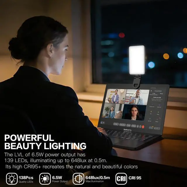 Designed for creators on camera, this compact RGB selfie light delivers natural, eye-friendly lighting and vibrant full-color effects. With 138 LEDs, CRI 95+, adjustable brightness, and a rechargeable battery, it enhances video calls, streaming, vlogging, and everyday content creation.