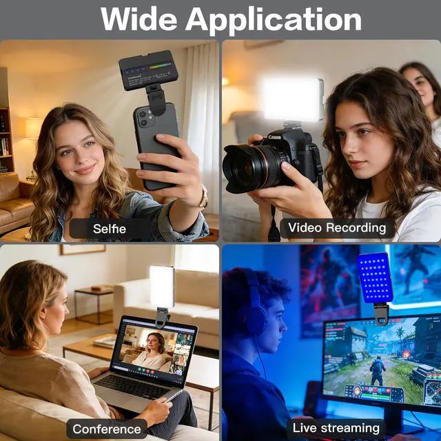 From selfies and live streaming to photography, video lighting, and outdoor use, this compact RGB light adapts to every scene. Adjustable brightness, multiple color modes, and portable mounting make it easy to create clear, flattering light anytime, anywhere—at home or on the go.