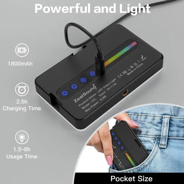 ZealSound Full Color RGB Selfie Light for Creators & Streamers