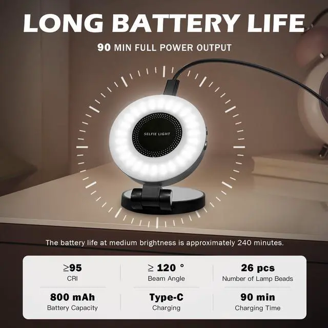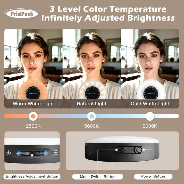 Various colors & Adjustable Lighting ModesPhone selfie light offers Various colors temperatures adjustable from 2500K to 9000K, CRI95+, 120° lighting angle. Different modes switched through the physical buttons. Selfie light versatility enhances the quality of selfie and suitable for various scenarios. Ideal for social media vlogs recording, selfies, podcast, makeup artists streamer TikTok live streaming, table laptop video conferencing, as content creator essential and influencer must have.