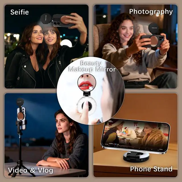 Convenient Built-in Makeup MirrorThe phone fill light has a built-in 645mm high-definition makeup mirror, which can be used with the fill light to quickly touch up your makeup anytime, anywhere. Making grooming routines and quick adjustments easier on-the-go. Fix lipstick during subway transfers, tame flyaways before cafe selfies, or nail perfect lighting for live makeup tutorials. When the flattering glow erases shadows, you'll see a polished version of yourself.