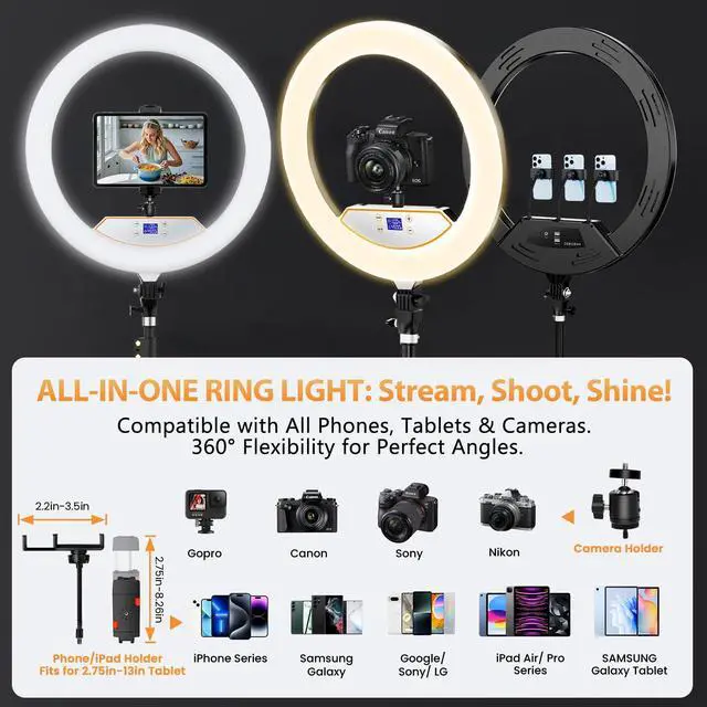 ![]() 22inch Ring Light | ![]() 22" Foldable Ring Light | ![]() 22" Overhead Phone Mount | ![]() 18" Foldable Ring Light | ![]() 18" Foldable Ring Light | ![]() 10“ Desk Ring Light | ![]() 6inch Ring Light |