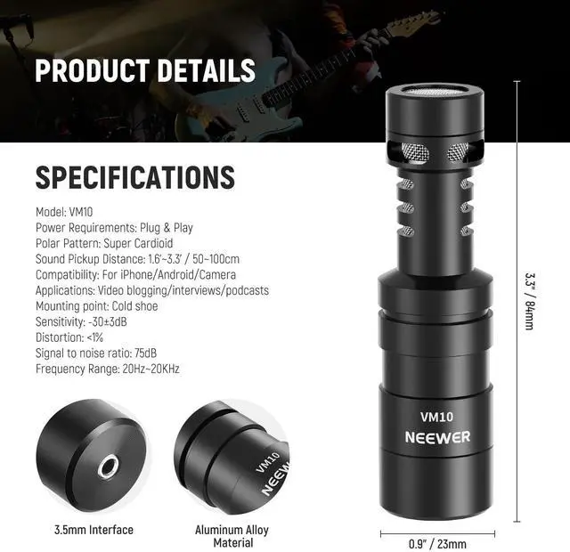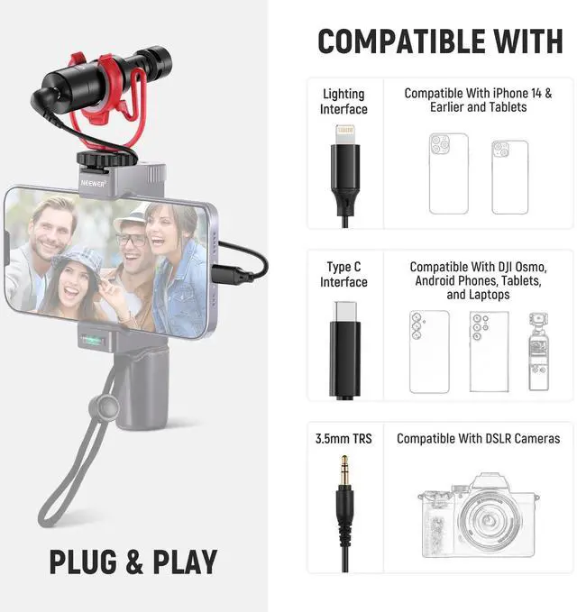 | Included Components | 1 x Microphone1 x Shock Mount1 x Furry Windshield1 x Foam Windscreen1 x Camera Audio Cable2 x OTG Audio Cable1 x Pouch1 x User Manual |