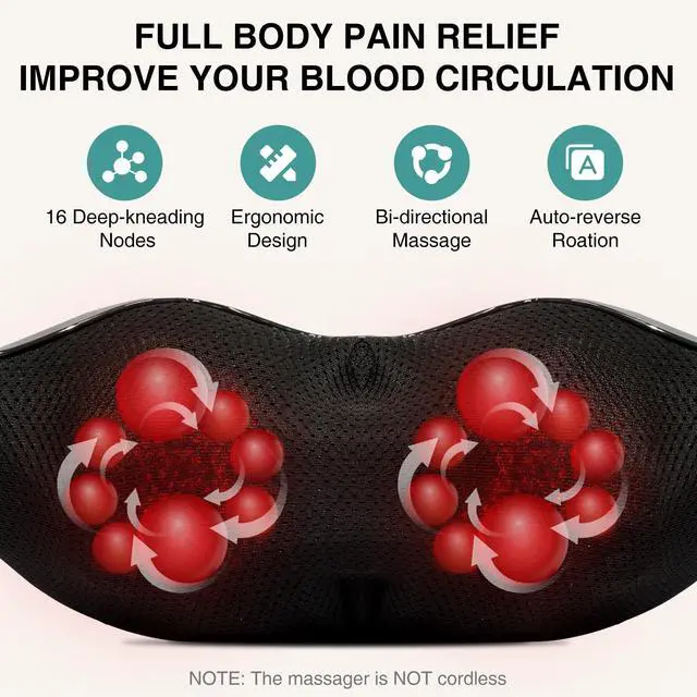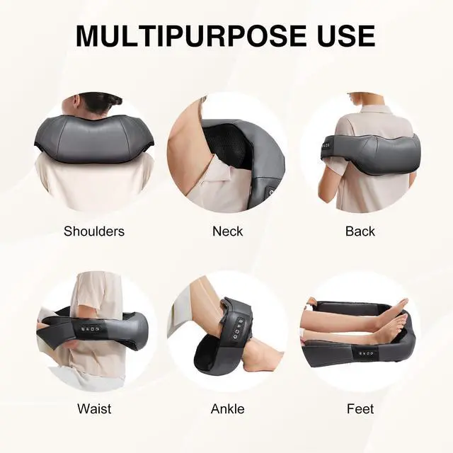 *Note: This massager is NOT CORDLESS. It must be plugged into a power outlet for use. For optimal performance, use the neck massager in a dry environment (humidity <60%). Avoid using it in damp places like bathrooms. Use a stable power supply to prevent disruptions from voltage fluctuations.