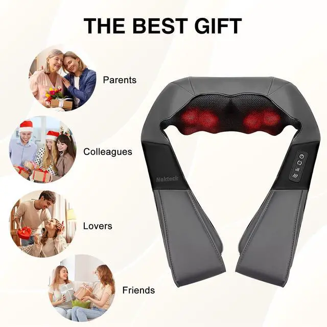 Nekteck Shiatsu Neck and Back Massager with Heat for Pain Relief Deep Tissue