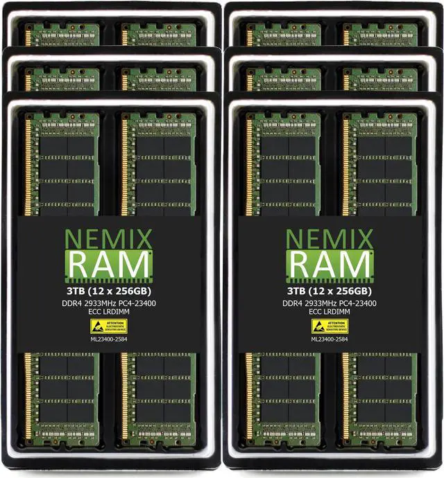 NEMIX RAM 3TB (12X256GB) DDR4 2933MHZ PC4-23400 8Rx4 1.2V 288-PIN ECC LRDIMM Load Reduced Server Memory KIT