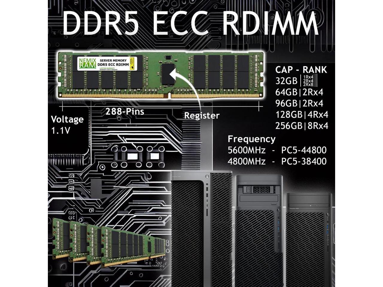 NEMIX RAM 512GB (8X64GB) DDR5 4800MHZ PC5-38400 2Rx4 1.1V 288-PIN ECC RDIMM Registered Server Memory KIT Compatible with Dell PowerEdge R960 Server
