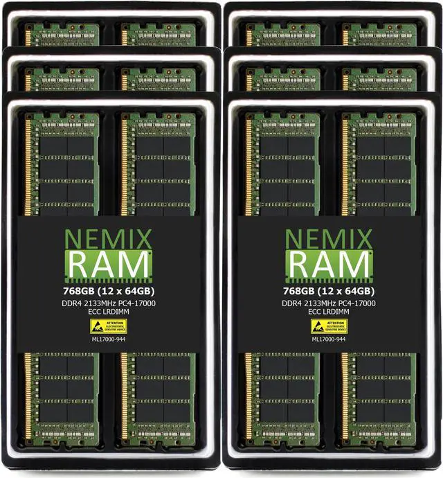 NEMIX RAM 768GB (12X64GB) DDR4 2133MHZ PC4-17000 4Rx4 1.2V 288-PIN ECC LRDIMM Load Reduced Server Memory KIT