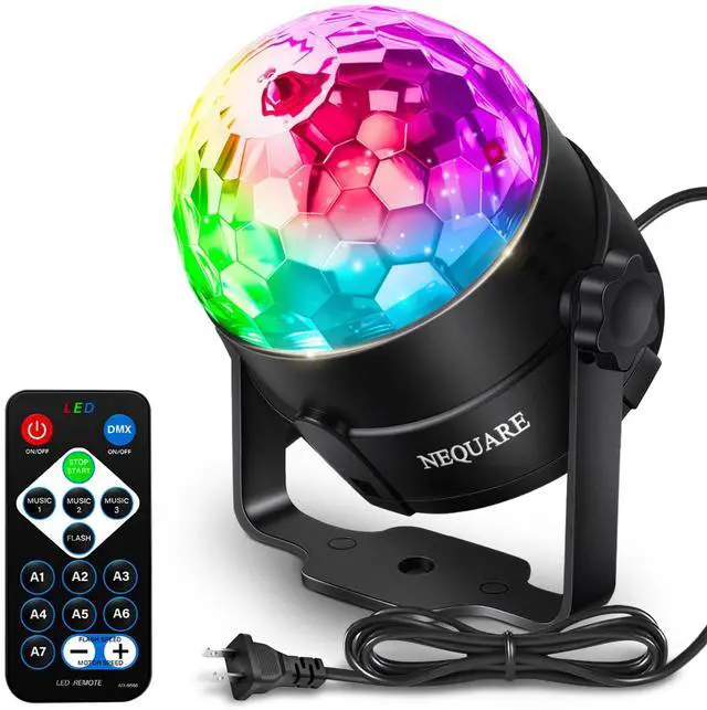 Colorful Party Lights: 3 Sound Activated Modes + 7 Lighting Modes + Flash + Rotating Speed Control + Flash Speed Contro which makes you easy to control and switch lighting theme.